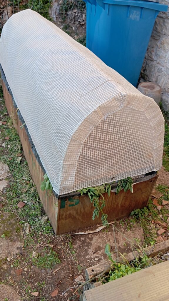 Montiran na visoku gredicu gdje se još vide ostaci rukole. Uskoro ću ovamo preseliti sadnice iz kuće, ljeti će ovdje biti krastavci, a zimi neki od radiča.