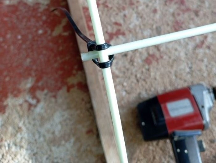 Ovu konstrukciju sam stabilizirao sa dvije žice od 190cm i povezao plastičnim vezicama.